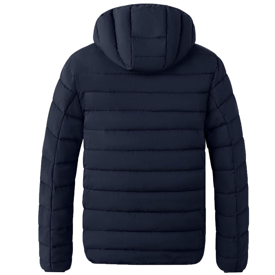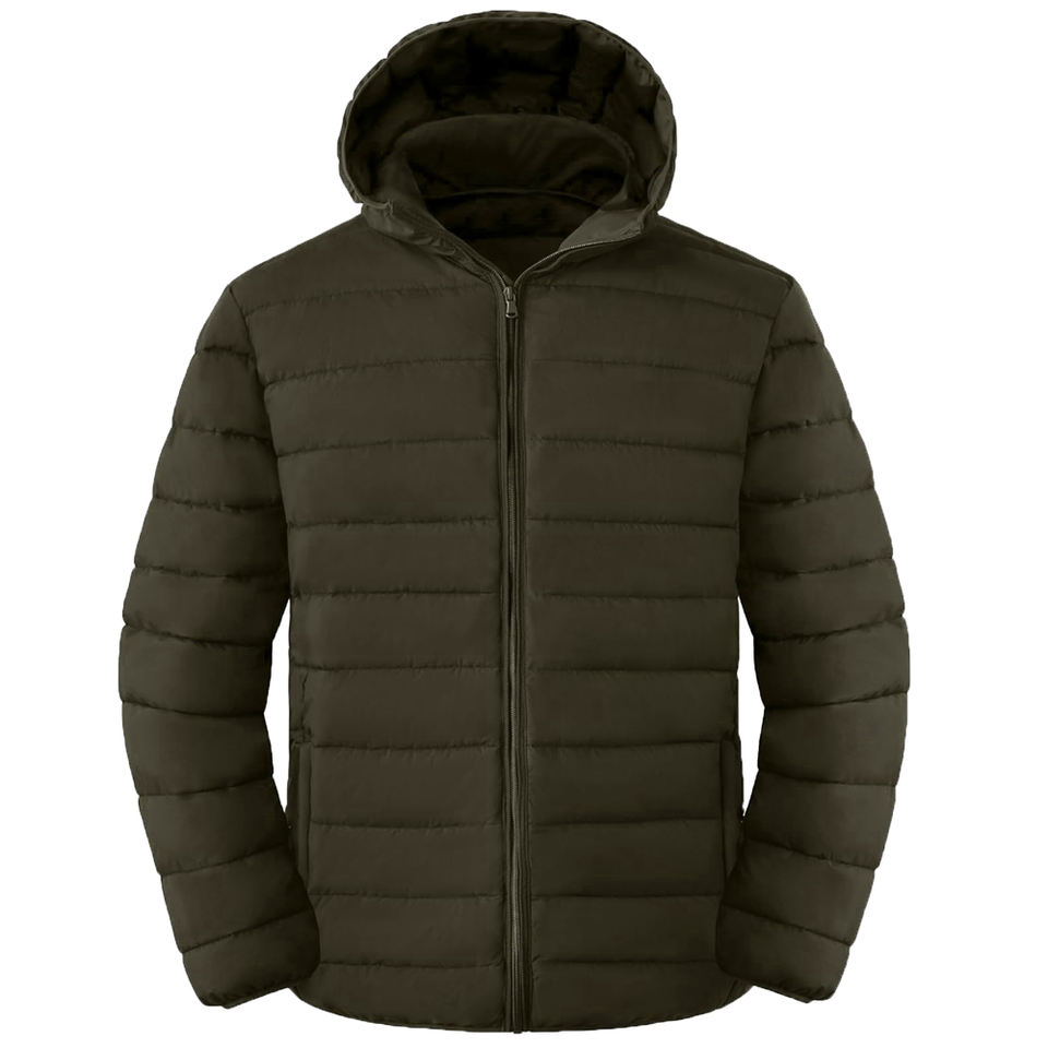 เสื้อแจ็คเก็ตพัฟเฟอร์ผู้ชายแบบมีฮู้ด เสื้อแจ็คเก็ตขนเป็ดกันน้ำ กันลม ซิปยาวเต็มตัว เสื้อโค้ทหนาอุ่นสำหรับฤดูหนาวพร้อมฮู้ด