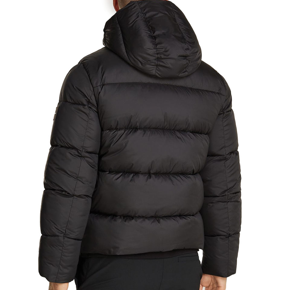 แจ็กเก็ตขนเป็ดของผู้ชายสีดำเสื้อเจอร์ซีย์แฟชั่นหรูหราออกแบบโลโก้ได้ตามต้องการ