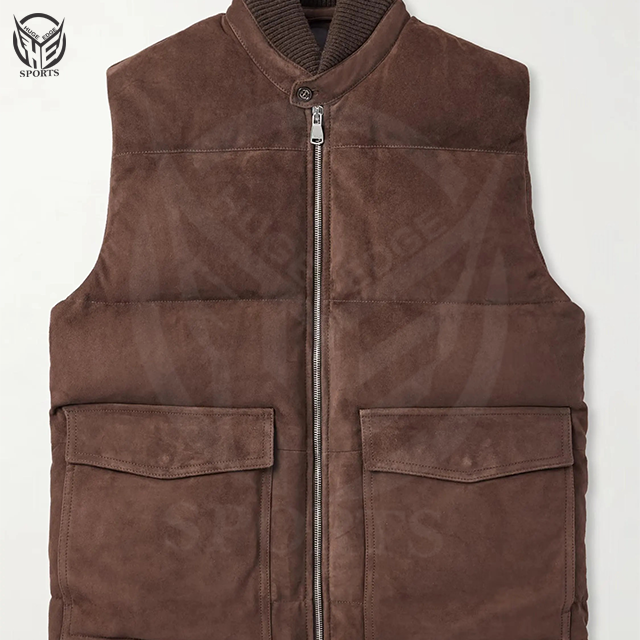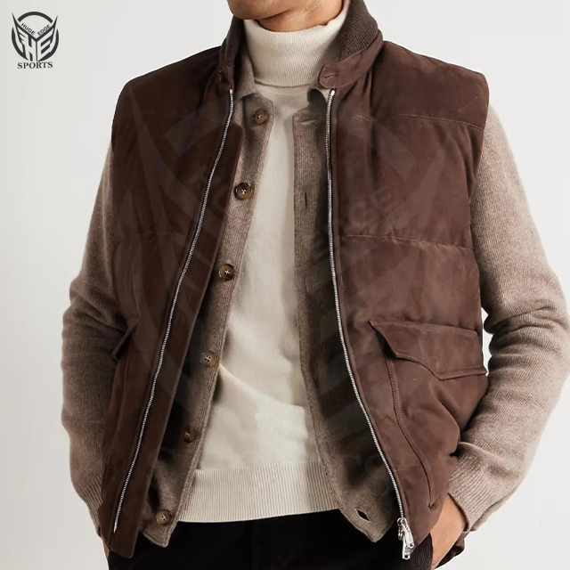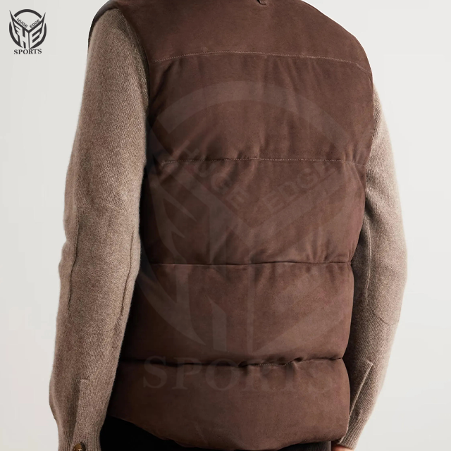 เสื้อกั๊กขนเป็ดหนัง100% สำหรับผู้ชายสไตล์ซาฟารีกันลมเป็นมิตรต่อสิ่งแวดล้อม