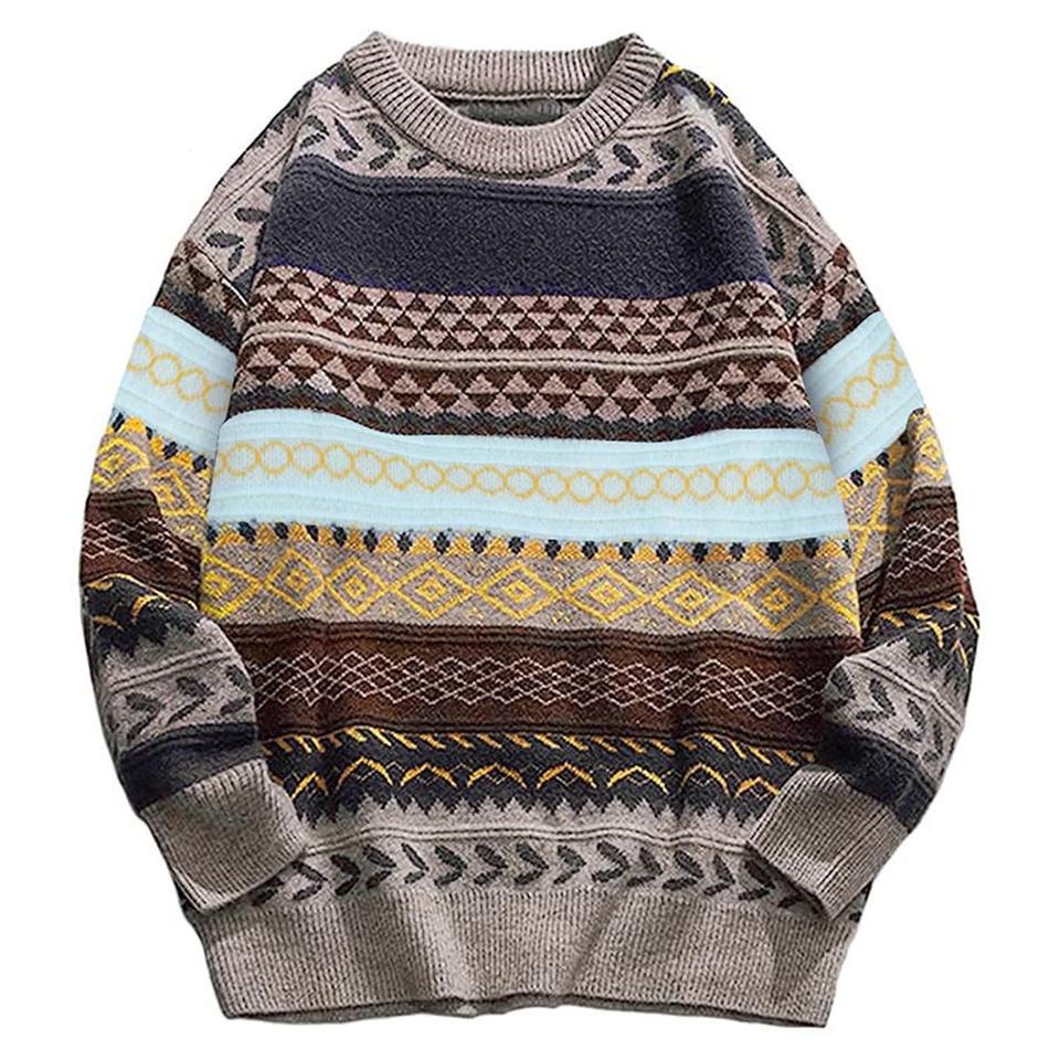 เสื้อสเวตเตอร์ถักแขนยาวสำหรับผู้ชายเสื้อสเวตเตอร์ผ้าคอตตอน100% สีพื้นป้องกันการพอง