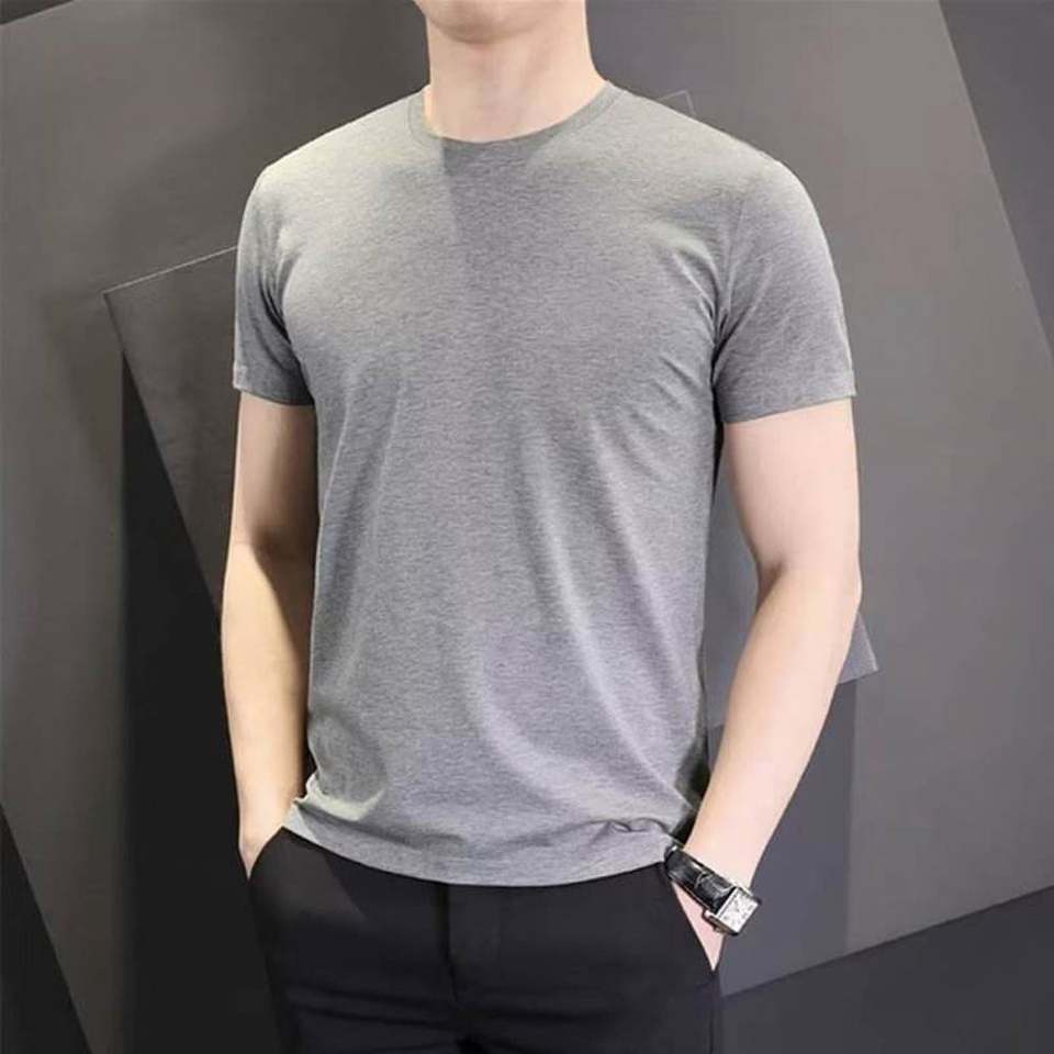 เสื้อยืดครึ่งแขนเข้ารูปสีขาวล้วนสำหรับผู้ชาย, เสื้อแขนสั้นขนาดพลัสไซส์ออกแบบลายว่างเปล่า