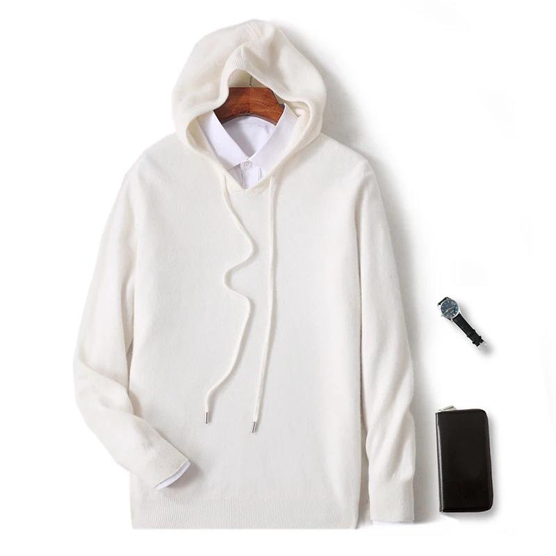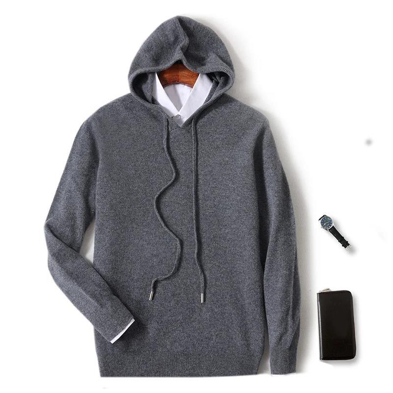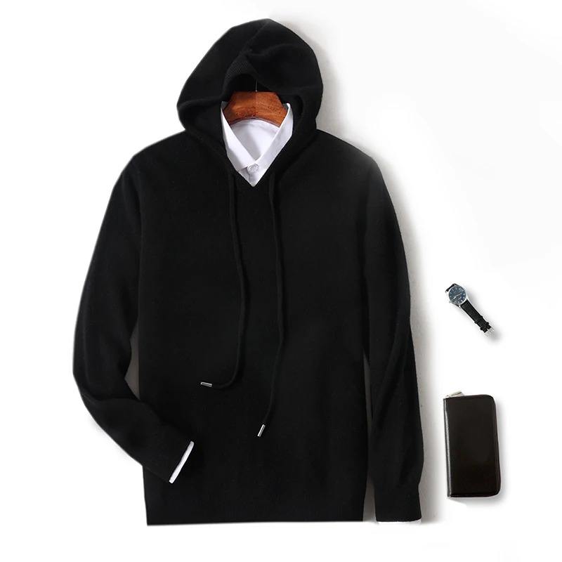 ชุดเสื้อสเวตเตอร์ลำลองมีฮู้ดโอเวอร์ไซส์ผ้าวูลสำหรับผู้ชายสีดำล้วนแบบทอสำหรับฤดูใบไม้ผลิฤดูใบไม้ร่วงฤดูหนาว