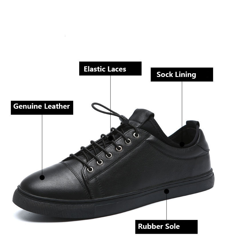 รองเท้าผ้าใบผู้ชายคุณภาพพรีเมียม หนังแท้ ระบายอากาศได้ดี น้ำหนักเบา แบบผูกเชือก สไตล์ลำลอง เดินสบาย สีดำล้วน สำหรับฤดูใบไม้ร่วง/ฤดูใบไม้ผลิ