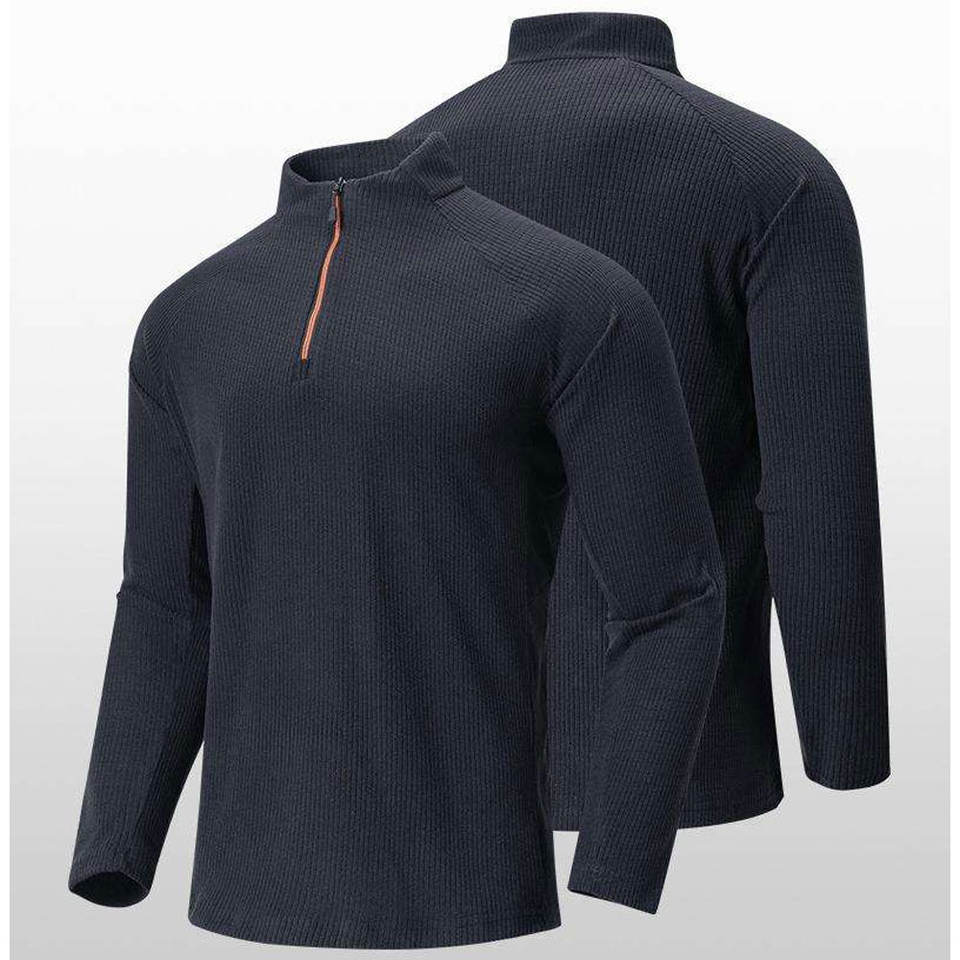 เสื้อสเวตเตอร์แขนยาวผู้ชายแบบซิป ¼ คอปก โลโก้สั่งทำได้ แห้งเร็ว ยืดหยุ่น เหมาะสำหรับออกกำลังกาย ซิป โพลีเอสเตอร์ คอตตอน ทรงหลวม ใส่ได้ในฤดูใบไม้ผลิ