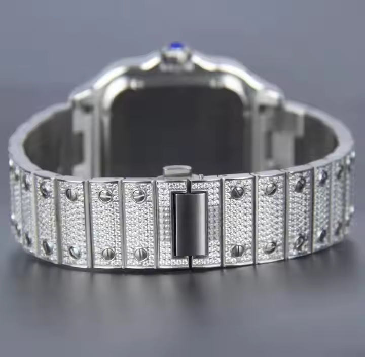 นาฬิกาควอตซ์สำหรับผู้ชาย สไตล์ธุรกิจและแฟชั่น ตัวเรือนโลหะผสม ประดับเพชรโมอิสซาไนต์ ดีไซน์สวยงาม ผลิตอย่างมีจริยธรรม