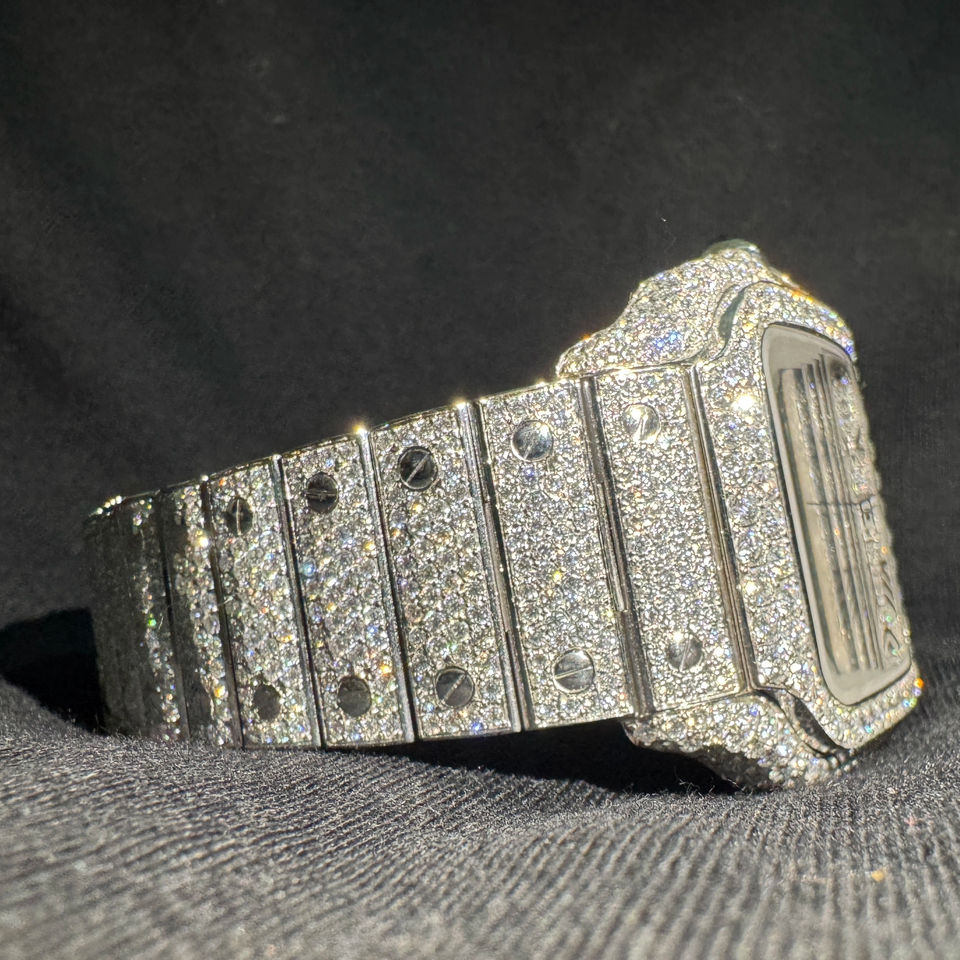 นาฬิกาข้อมือผู้ชาย ควอตซ์ ตัวเรือนทรงเหลี่ยม หน้าปัดคริสตัล ดีไซน์หรูหรา สง่างาม ประดับอัญมณีสี D คุณภาพระดับท็อป VVS มอยส์ซาไนต์ คุณภาพสูงสุด สหรัฐอเมริกา สหราชอาณาจักร