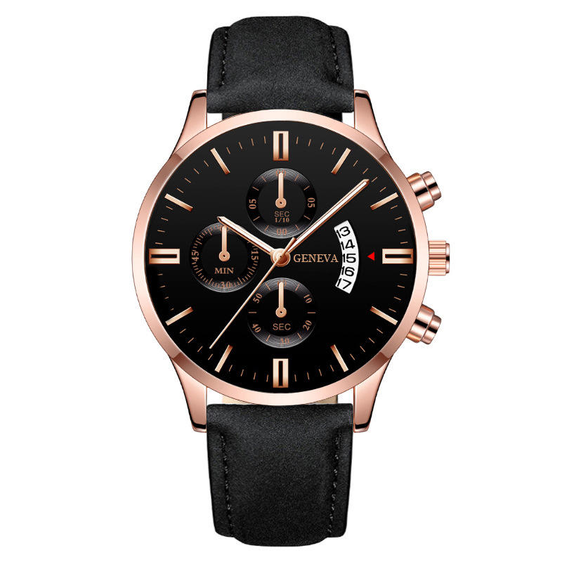 นาฬิกาควอตซ์ของผู้ชายสายหนังนาฬิกาข้อมือธุรกิจลำลองแสดงวันที่นาฬิกาผู้ชายทันสมัย