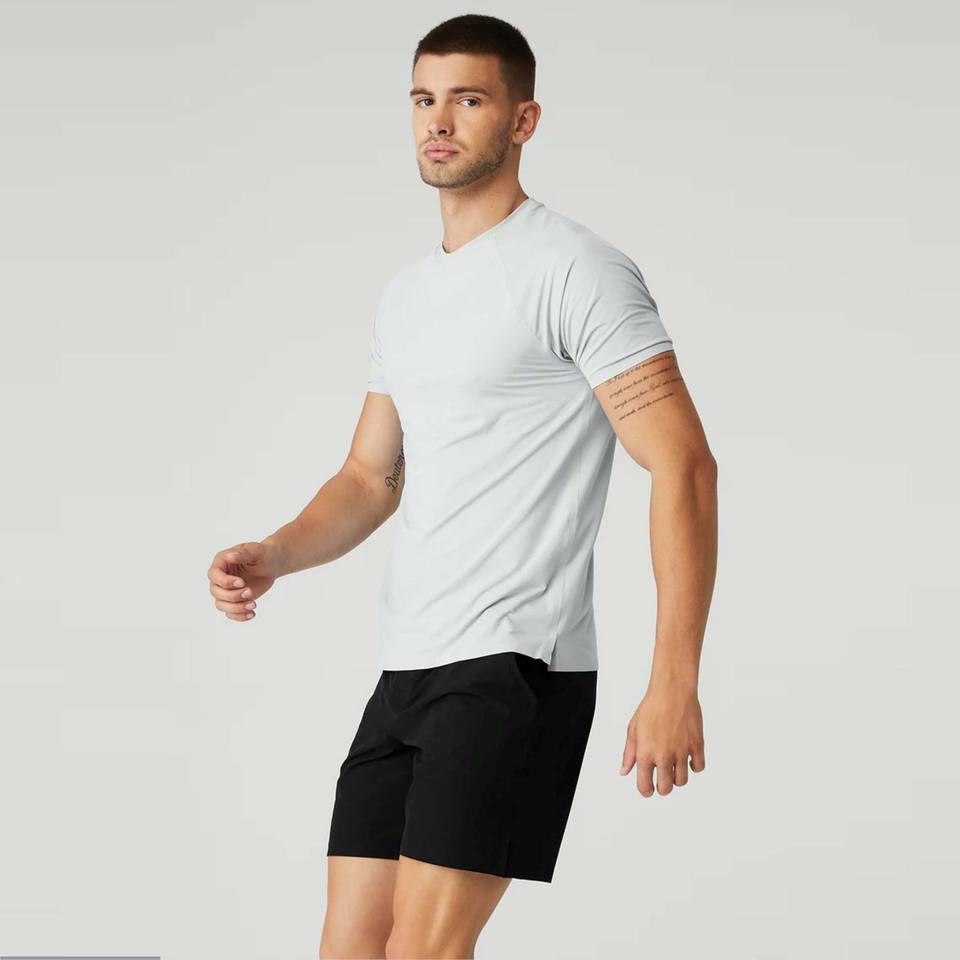เสื้อยืดกีฬาแห้งเร็วของผู้ชายเสื้อฟิตเนสแขนสั้นซับเหงื่อสำหรับยิมวิ่งและเล่นกีฬายืดได้