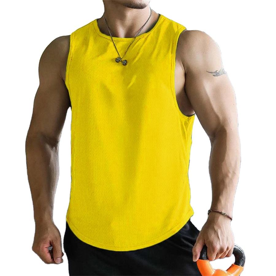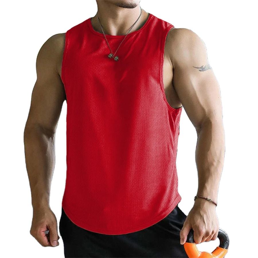 เสื้อกล้ามผู้ชายแห้งเร็ววัสดุตาข่ายโพลีเอสเตอร์ระบายอากาศได้ดีเสื้อยืดบาสเกตบอลออกกำลังกายฟิตเนส