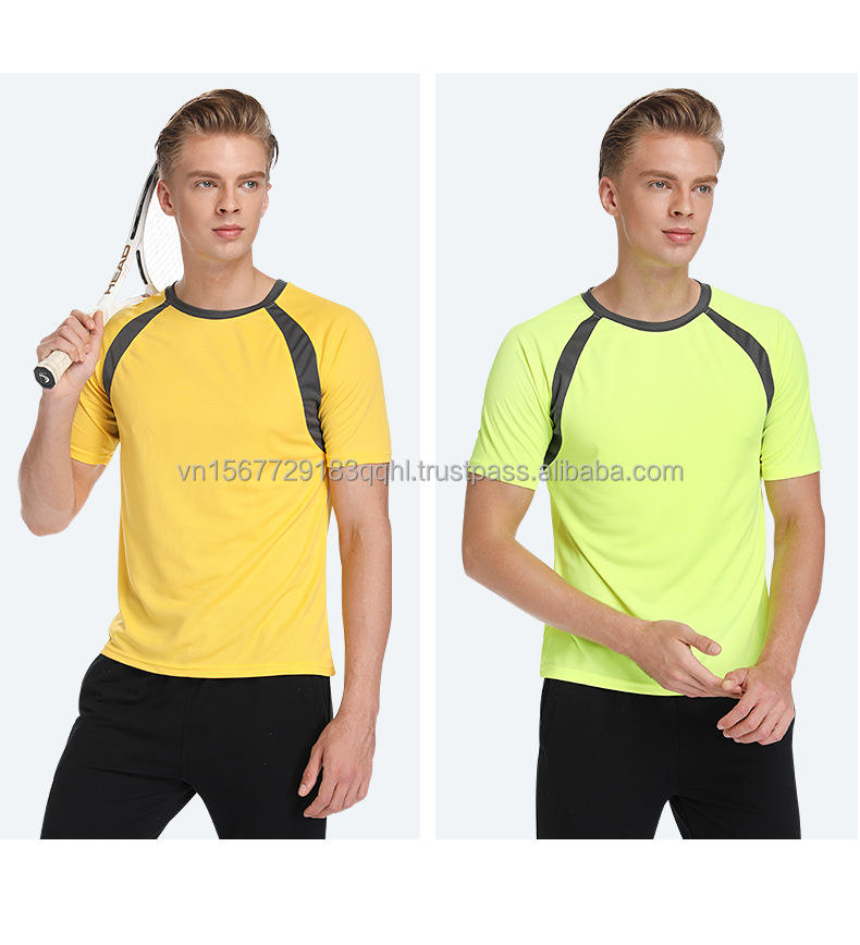 เสื้อรัดรูปออกกำลังกายแห้งเร็วของผู้ชาย100% เสื้อยืดแขนสั้นผ้าโพลีเอสเตอร์และผ้าโมดสำหรับฝึกซ้อมและวิ่งในยิม