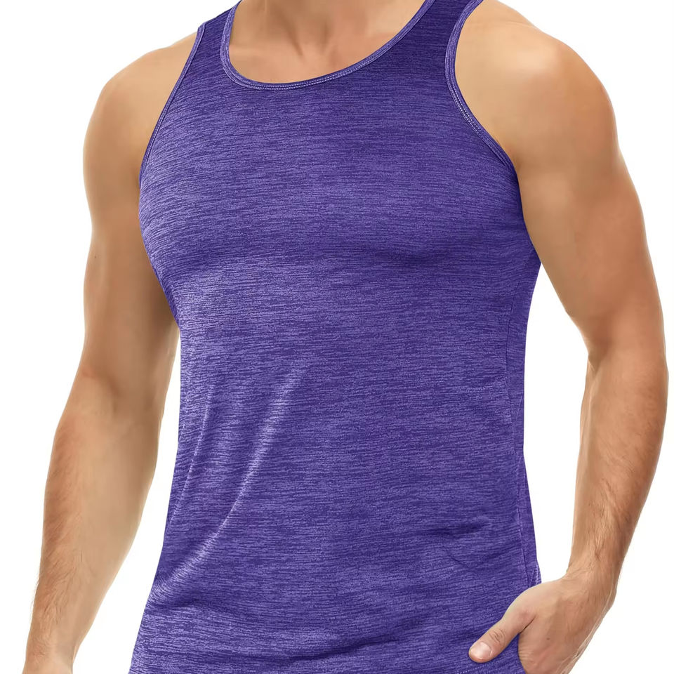 เสื้อเชิ้ตตาข่ายคอกลมสำหรับผู้ชายแห้งเร็วรัดรูปสำหรับกีฬาแขนกุดแห้งเร็ว