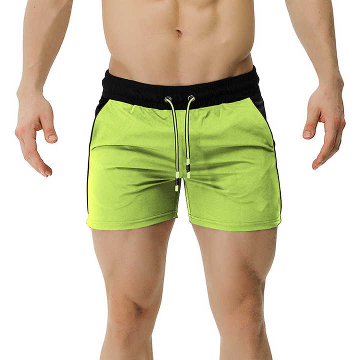 กางเกงกีฬาขาสั้นผู้ชาย แห้งเร็ว ใส่สบายช่วงฤดูร้อน มีกระเป๋า ระบายอากาศได้ดี เป็นมิตรกับสิ่งแวดล้อม ผลิตจากโพลีเอสเตอร์ 100% เนื้อผ้าเรียบ สำหรับวิ่ง ฟิตเนส และการฝึกซ้อม