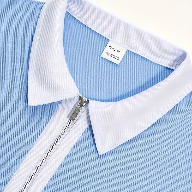 เสื้อโปโลผู้ชายแบบแห้งเร็ว มีซิป มีกระเป๋า ผลิตจากผ้าแห้งเร็ว ออกแบบและสกรีนโลโก้ได้