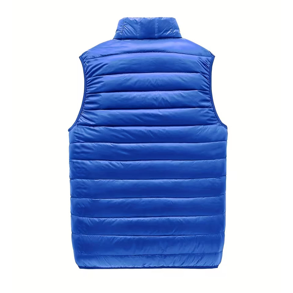 เสื้อกั๊กแบบมีซิปเต็มตัว ยูนิเซ็กซ์ ผ้าควิลท์ ระบายอากาศได้ดี เป็นมิตรกับสิ่งแวดล้อม บุด้วยผ้าฟลีซ แบบพับเก็บได้ มีโลโก้ด้านหน้า ให้ความอบอุ่นในฤดูหนาว