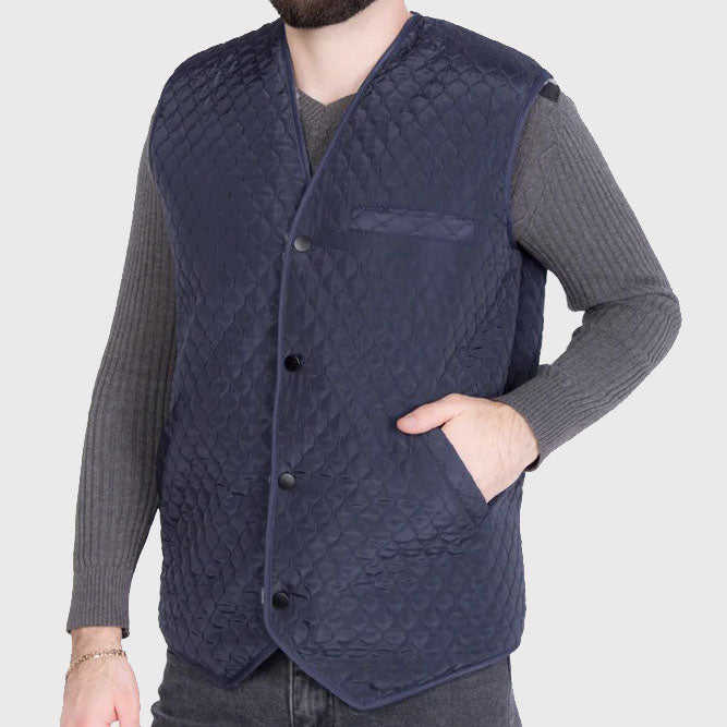 เสื้อกั๊กหนังแกะสไตล์คาวบอยสำหรับผู้ชาย ดีไซน์เย็บลายแบบควิลท์ พร้อมกระเป๋า