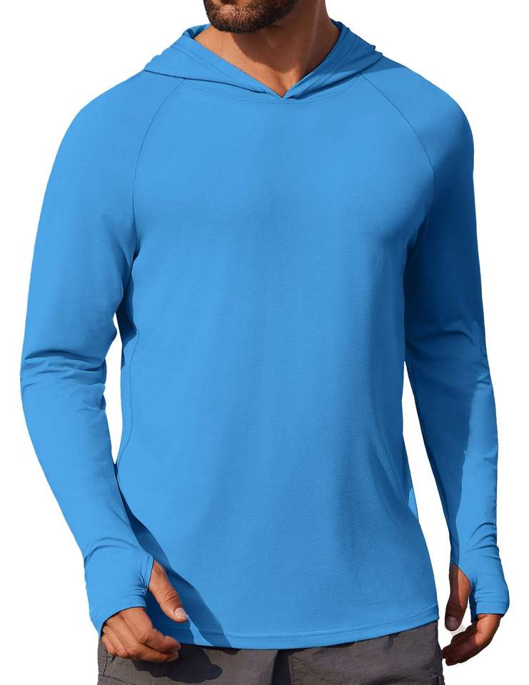 เสื้อ Rash Guard สำหรับผู้ชาย, เสื้อมีฮู้ดป้องกันแสงแดดแขนยาวเสื้อตกปลาแห้งเร็วน้ำหนักเบา