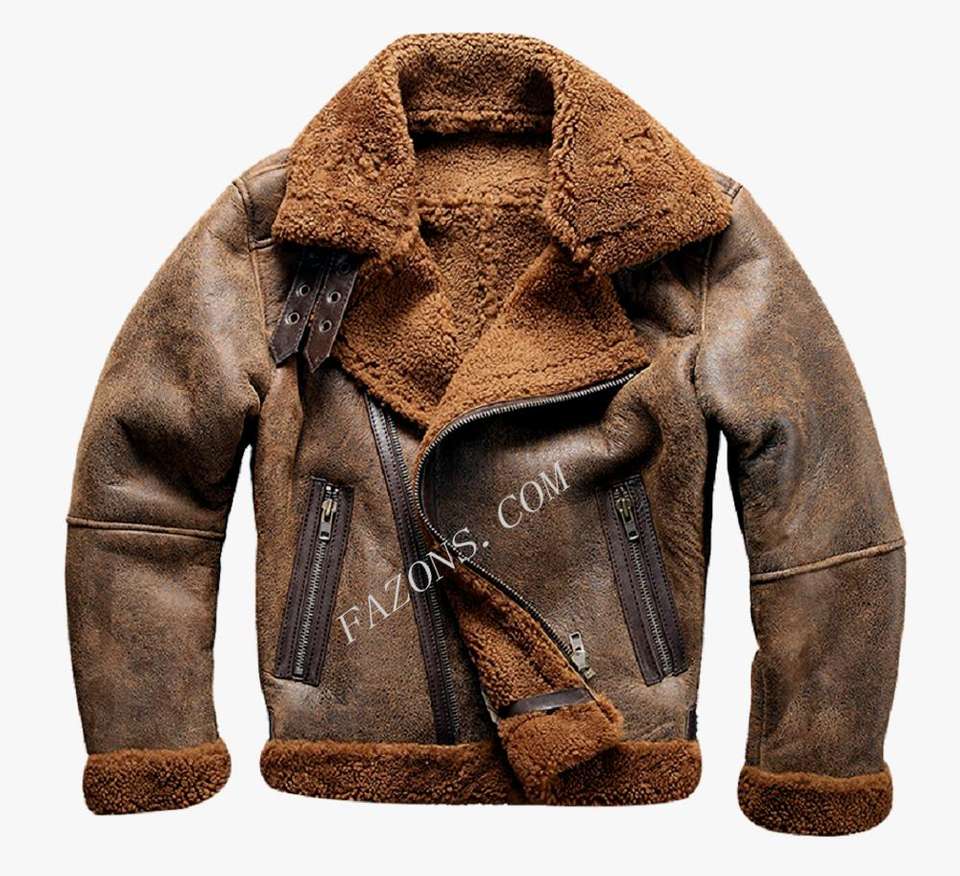 แจ็คเก็ตหนังแกะ shearling ผู้ชาย B3แท้, แจ็คเก็ตนักบินนักบินนักบินนักบินนักบินนักบินหนังแท้สำหรับฤดูหนาวแฟชั่นวินเทจ