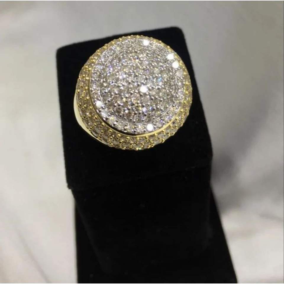แหวนเพชรแท้สำหรับผู้ชายสไตล์ย้อนยุค & ฮิปฮอปโรสโกลด์ & ชุบทองฝังด้วยกรงเล็บการตั้งค่ารูปทรงเรขาคณิตสำหรับปาร์ตี้