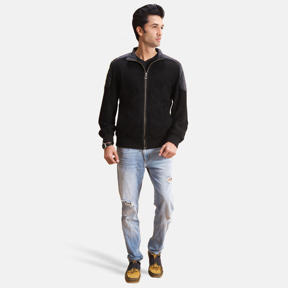แจ็คเก็ตหนังแท้ผู้ชาย ปกตั้ง ปักโลโก้ด้านหน้า กันน้ำ เป็นมิตรกับสิ่งแวดล้อม คุณภาพสูง ซิป แขนยาว ขายส่ง