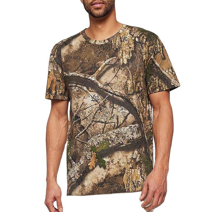 เสื้อยืดผ้าไหม/ผ้าฝ้ายพิมพ์ลายตามสั่งสำหรับผู้ชาย | เสื้อยืดคอกลมแขนสั้นสำหรับล่าสัตว์และกิจกรรมกลางแจ้ง | แห้งเร็ว ทรงปกติ