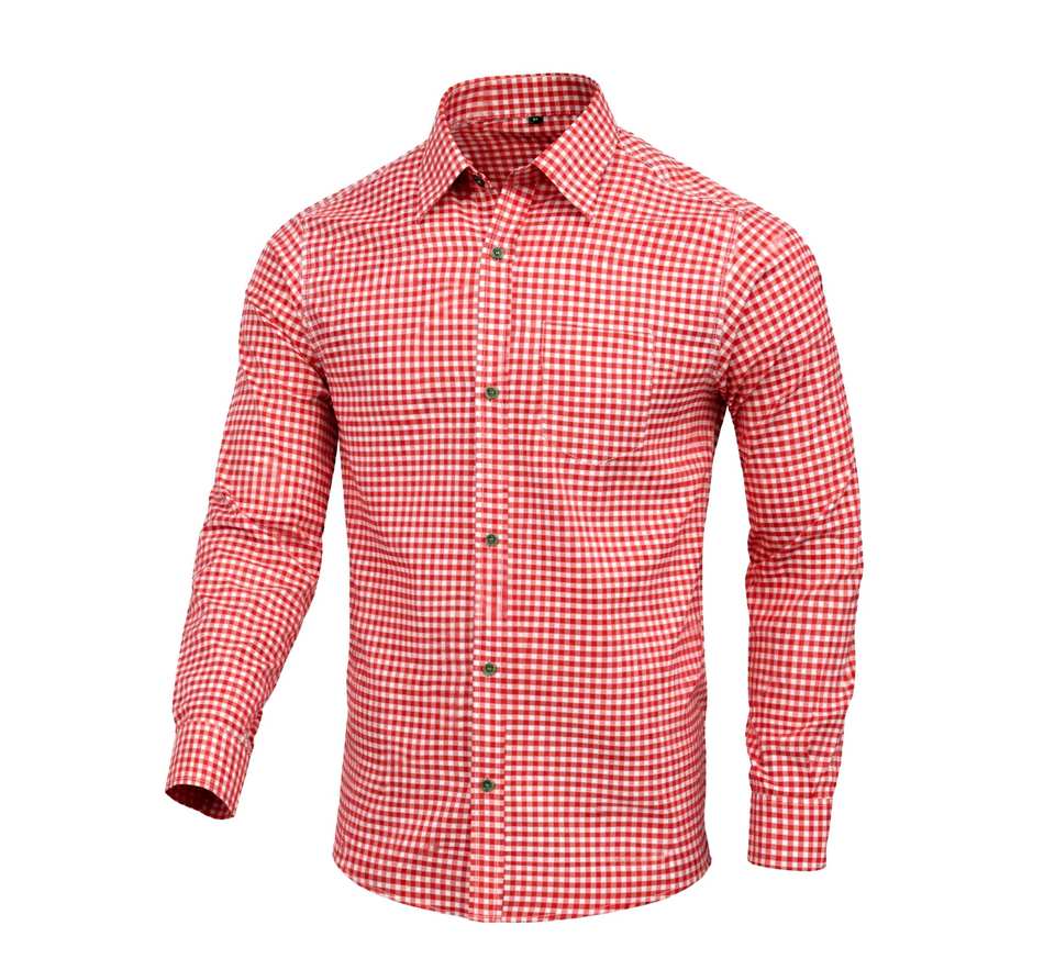 Men’s Red Bavarian Trachten Shirt Oktoberfest Cultural Cotton Long Sleeve S to 4XL