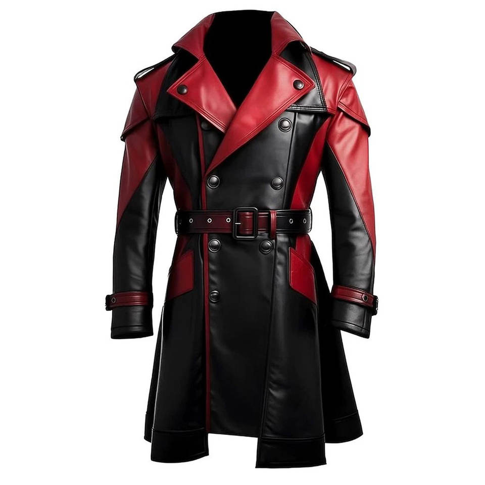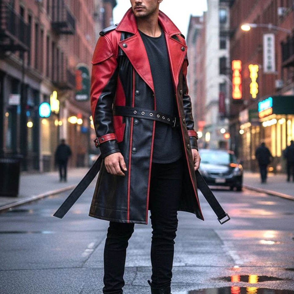 เสื้อโค้ทกอธิคสีแดงดำสำหรับผู้ชาย สไตล์สตีมพังก์ พังก์ร็อก สำหรับคอสเพลย์ฮาโลวีน