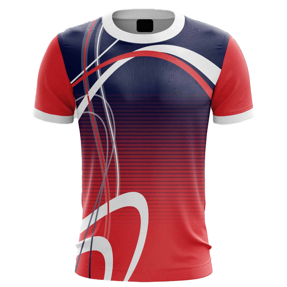 เสื้อยืดกีฬาไล่เฉดสีแดงและกรมท่าสำหรับผู้ชาย พิมพ์ลายแบบระเหิดตามสั่ง ระบายอากาศได้ดี แขนสั้น คุณภาพสูงสำหรับสวมใส่ในชีวิตประจำวัน