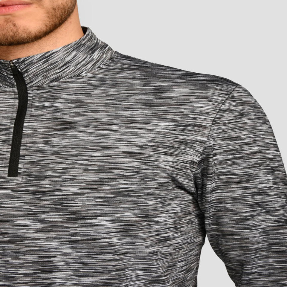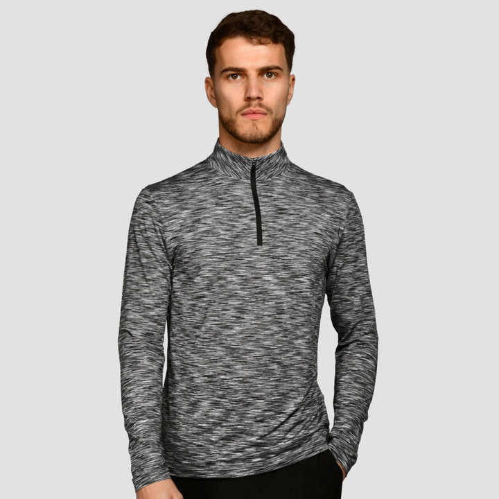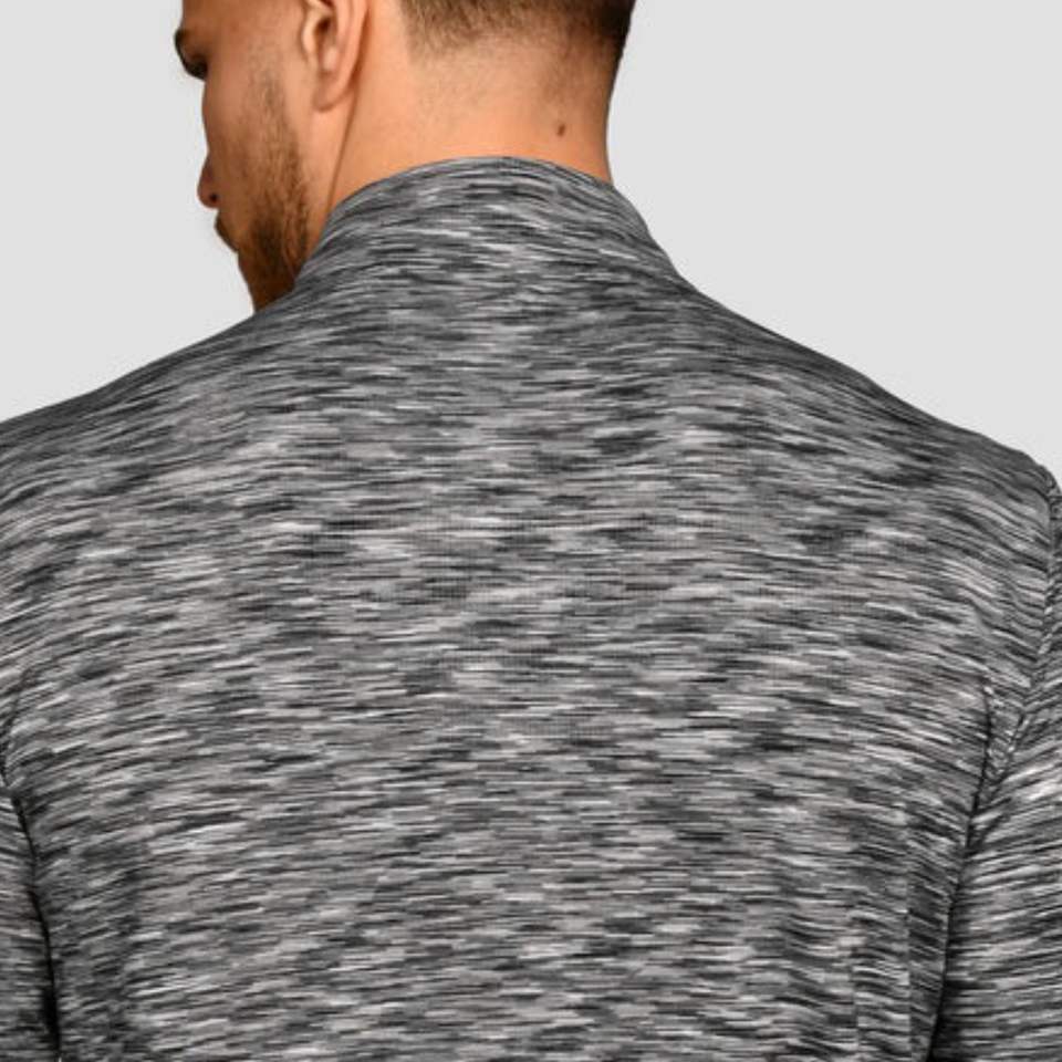 ซิปเทรลสลิมฟิตสำหรับผู้ชายเสื้อเชิ๊ตผู้ชายสะท้อนแสงโลโก้1/4แพลตตินัมสีเทาระบายอากาศน้ำหนักเบาแขนยาว88% โพลีเอสเตอร์12% อีลาสเทน