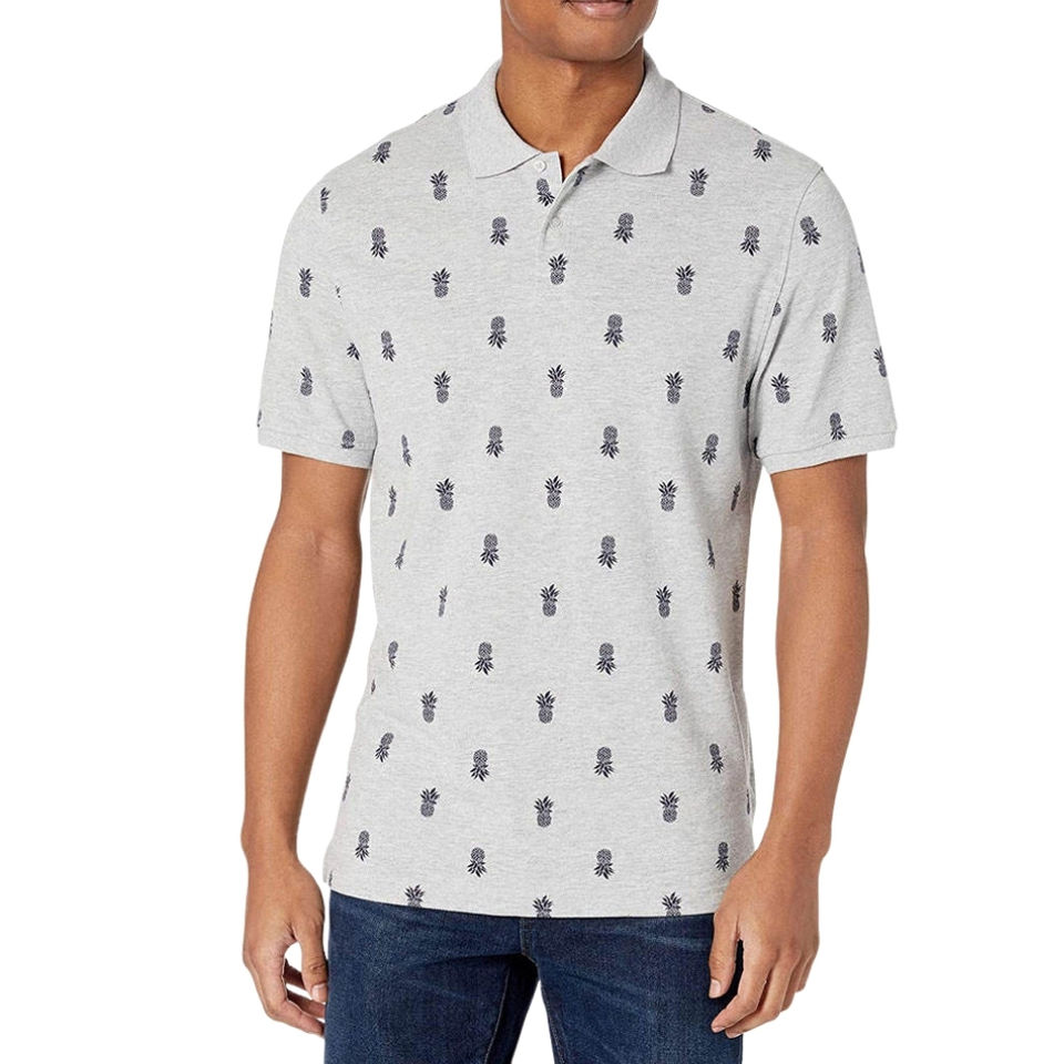 เสื้อเชิ้ตแขนสั้นผู้ชายผ้าคอตตอนทั่วไปมีกระเป๋าพิมพ์ลายแฟชั่นป้องกันรอยยับ