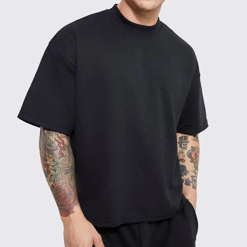 เสื้อยืดทรงบ็อกซี่ผู้ชาย ทรงปกติ สตรีทแวร์แบบสั่งทำพิเศษ ผ้าคอตตอนหวีอย่างดี สีขาวล้วน คอเล็ก เสื้อยืดสั่งทำพิเศษ ผ้าไม่ยับ