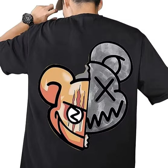 เสื้อยืดผู้ชายทรงปกติ ผ้าฝ้าย 100% ระบายอากาศ แห้งเร็ว แขนสั้น สไตล์สตรีทแวร์ ฮิปฮอป แฟชั่นเมือง ลุคเท่ๆ