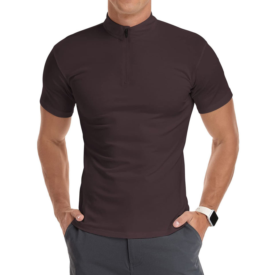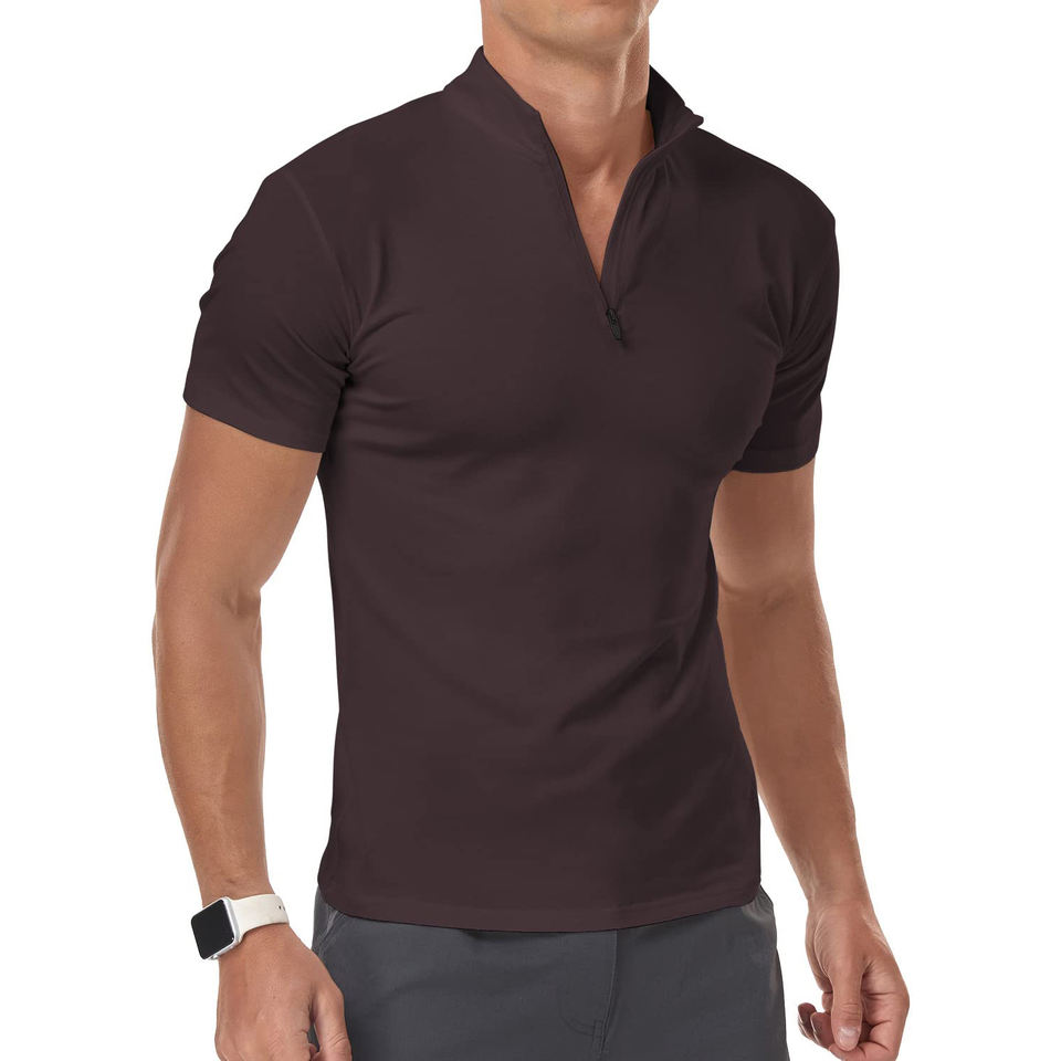 เสื้อยืดคอซิปผู้ชายทรงปกติ น้ำหนักเบา แขนสั้น ผ้าถัก สวมใส่สบาย เหมาะสำหรับฤดูร้อน ชายหาด และการเดินทาง