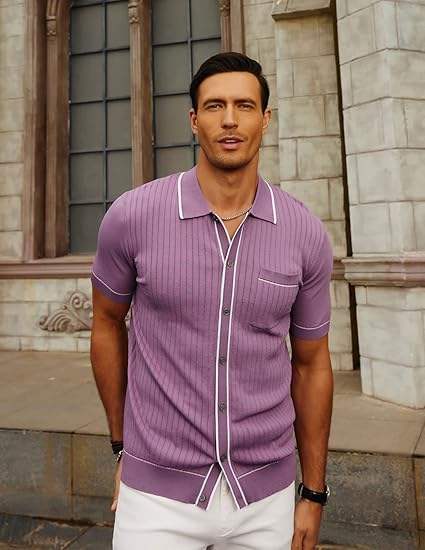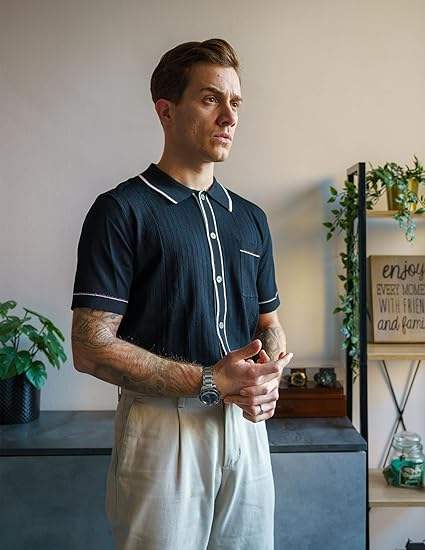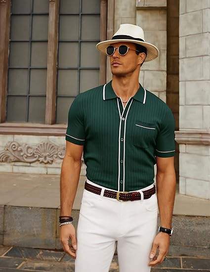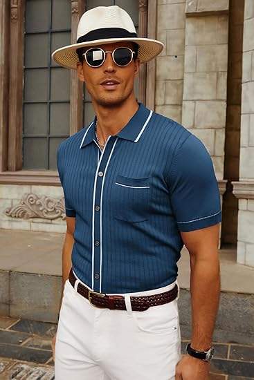 เสื้อโปโลผู้ชายทรงปกติ แขนสั้น ผ้าวิสโคส/คอตตอนถัก ระบายอากาศได้ดี ติดกระดุม สำหรับเล่นกอล์ฟ