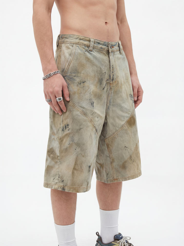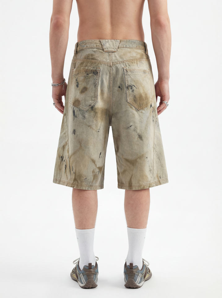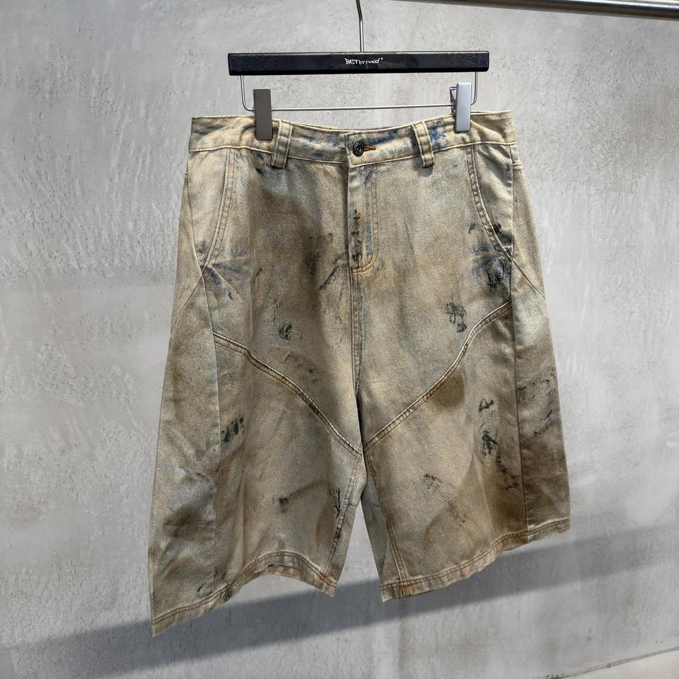 กางเกงยีนส์เดนิมสีเหลืองโคลนทรงหลวมเอวกลางสไตล์วินเทจสำหรับผู้ชาย พิมพ์ลายสาดสี ระบายอากาศได้ดี เป็นมิตรกับสิ่งแวดล้อม ผ้าถัก เหมาะสำหรับฤดูร้อน