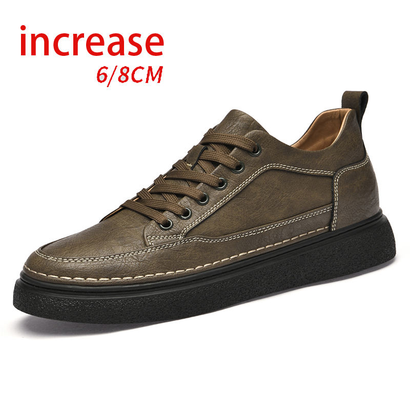 รองเท้าผ้าใบผู้ชายสไตล์เรโทรทรงหุ้มข้อสูง 8 ซม. เสริมส้นหนา พื้นหนา ใส่สบาย ระบายอากาศดี ดีไซน์ใหม่ทันสมัย