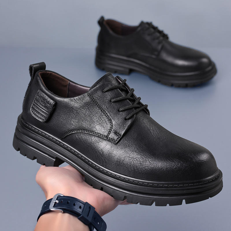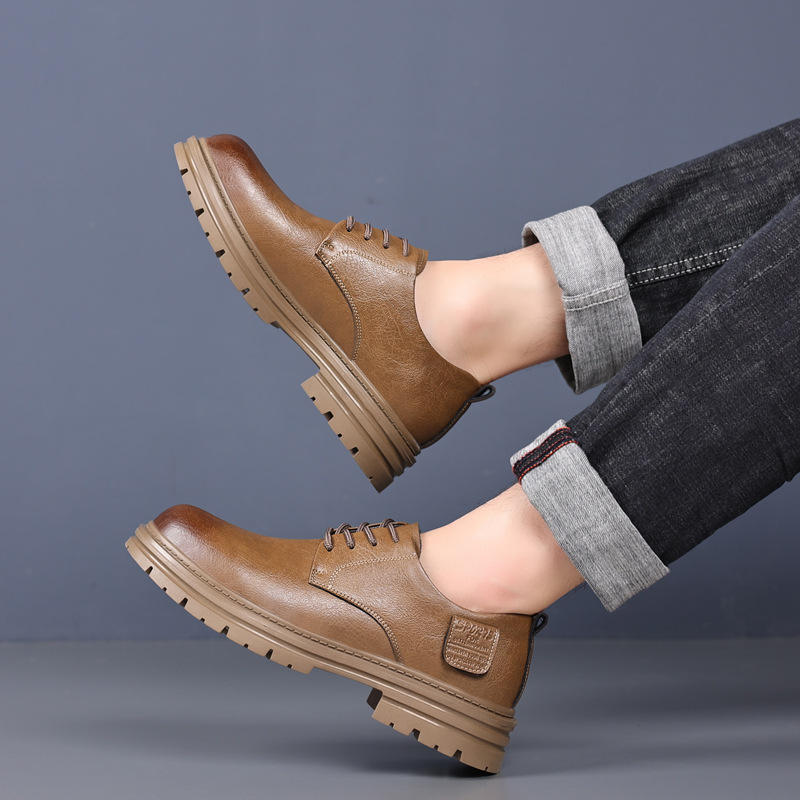 รองเท้าบูทหนังสไตล์เรโทรสำหรับผู้ชาย ส้นเตี้ย พื้นยางกันลื่น รองเท้าลำลองสำหรับทำงานและพักผ่อน ผลิตที่เมืองเหวินโจว