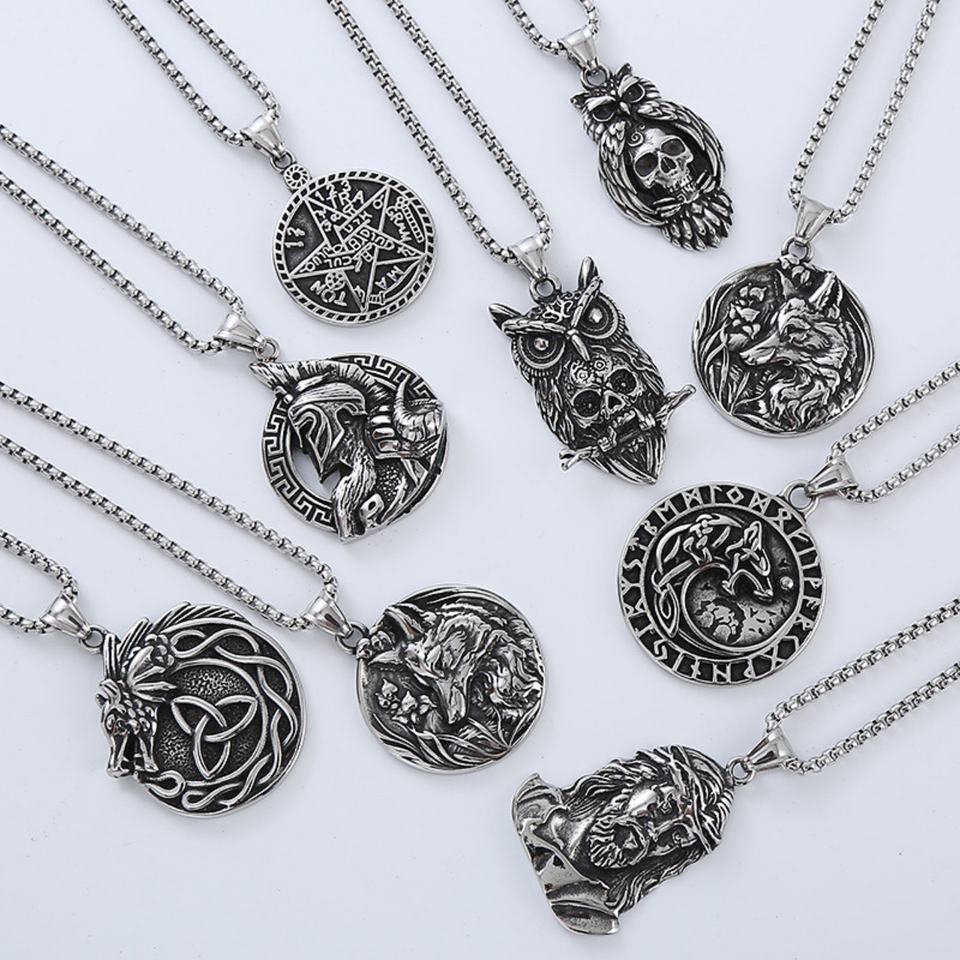 จี้ห้อยคอผู้ชายสไตล์เรโทร พังก์ สตรีท แฟชั่นเรียบง่าย ฮิปสเตอร์ ดีไซน์โดดเด่น สร้อยคอไทเทเนียมยาว
