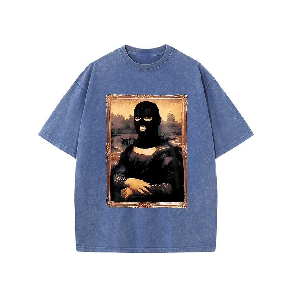 เสื้อยืดพิมพ์ลายไฮสตรีทของผู้ชายผ้าฝ้ายแท้ฟอกสีกรดแขนสั้นโอเวอร์ไซส์สไตล์ฮิปฮอปโรงงานขายส่ง