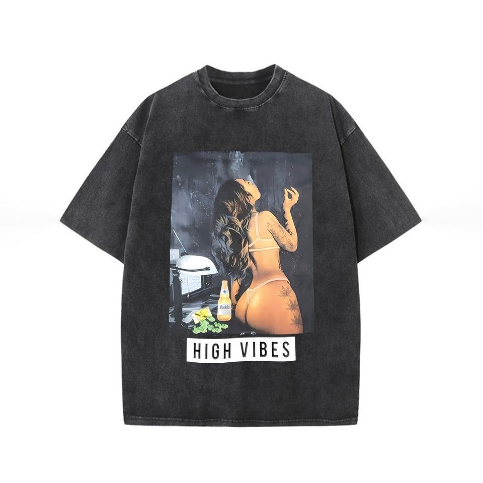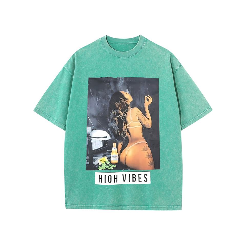 Men's Retro Vintage Acid Washed Cotton T-Shirt High Quality 100% Knitted Cotton Hip Hop Style Short Sleeve Oversized Turtleneck