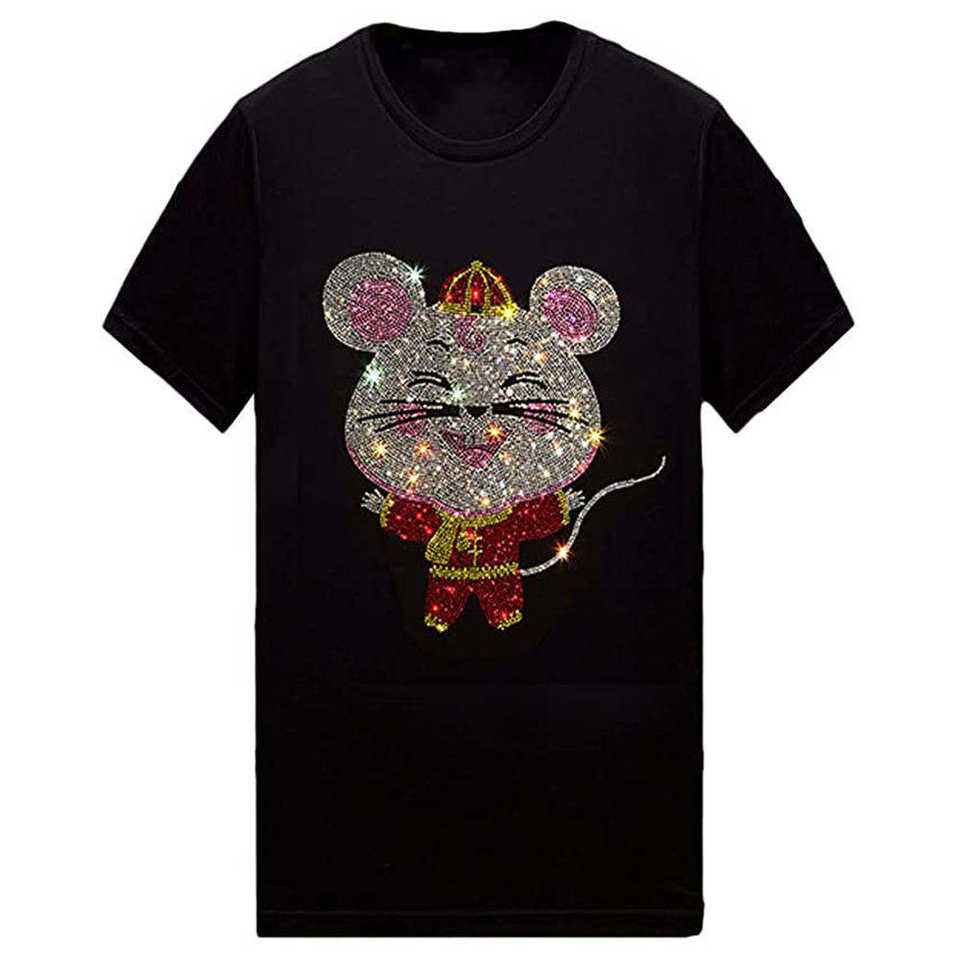 เสื้อยืดผู้ชายประดับพลอยเทียมเสื้อยืดคอกลมแขนสั้นทันสมัยสำหรับฤดูร้อนเสื้อสตรีทแวร์แวววาวคุณภาพสูงขายส่ง