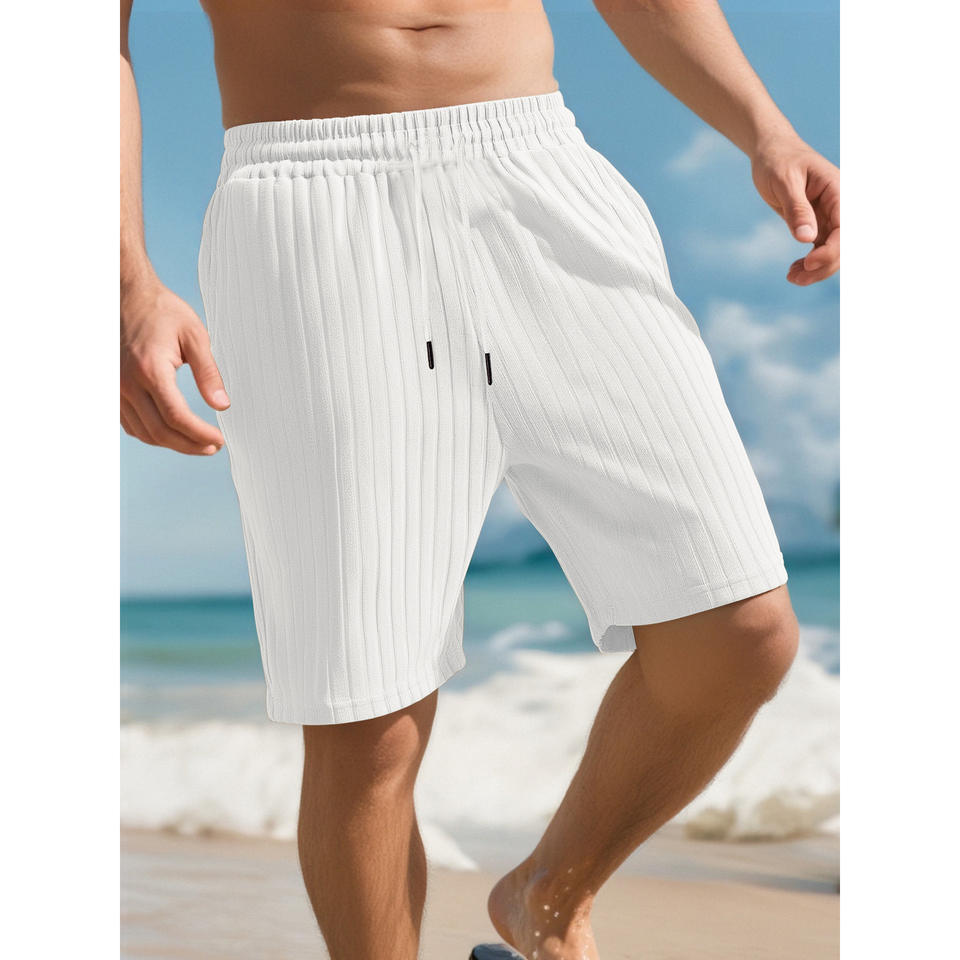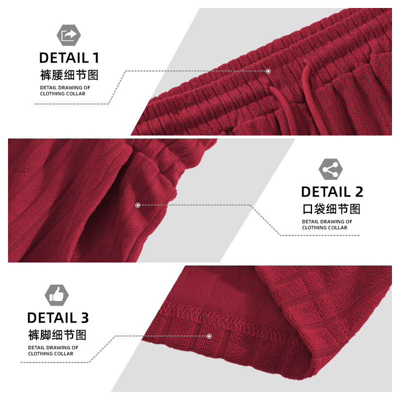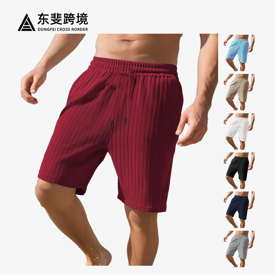 กางเกงขาสั้นผู้ชายแบบมีเชือกผูกเอวกลาง ระบายอากาศได้ดี เหมาะสำหรับพักผ่อน ลายทางสีแดง ชุดว่ายน้ำแบบสปอร์ต