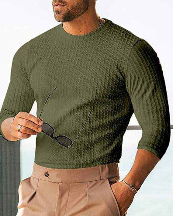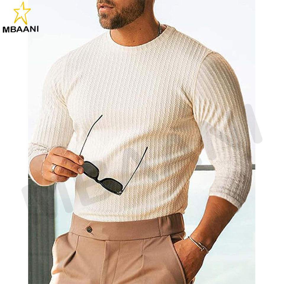 เสื้อยืดผู้ชายแขนสั้น คอกลม ทรงเข้ารูป ผ้าถักลายริบ แบบสวม