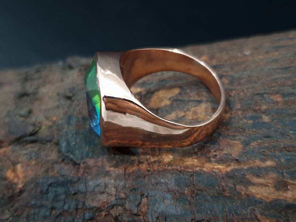 แหวนผู้ชายพลอยบุษราคัมธรรมชาติลึกลับรูปทรงตัดสดใส14K มีขอบสีโรสโกลด์ของขวัญพิเศษสำหรับงานแต่งงานสำหรับผู้ชาย