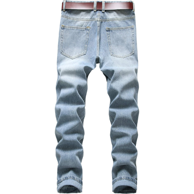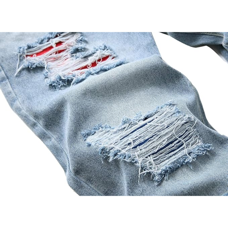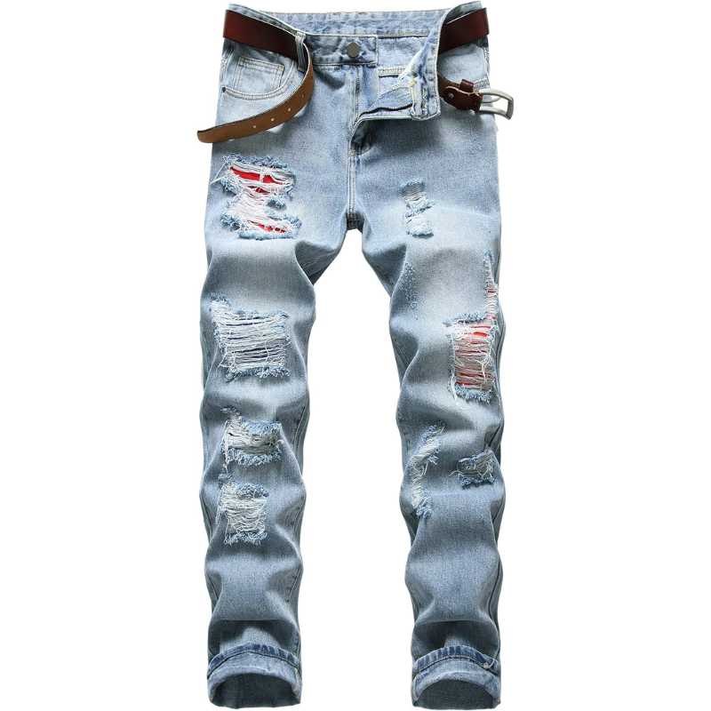 กางเกงยีนส์ทรงสลิมฟิตขาดๆ สำหรับผู้ชาย – กางเกงเดนิมขาตรงแบบขาดๆ แต่งรูแฟชั่น กางเกงลำลองสไตล์สตรีทแวร์