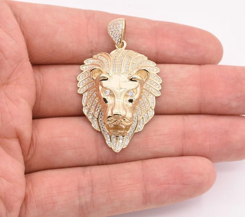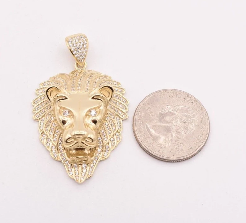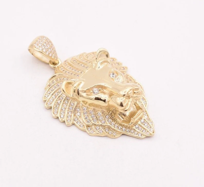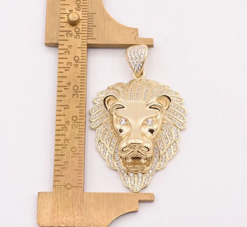 จี้รูปหัวสิงโตคำรามของผู้ชายจี้สุดสวยสีทอง10K สีเหลืองทองแท้สำหรับเครื่องประดับแฟชั่นของผู้ชาย