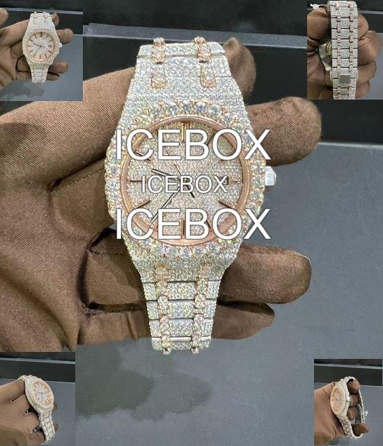 นาฬิกาข้อมือผู้ชายทรงกลม ประดับเพชรโมอิสซาไนต์และสแตนเลสสตีล หน้าปัดกระจก ฝังเพชรเต็มเรือน กันน้ำ 10 บาร์ สายแบบหัวเข็มขัด