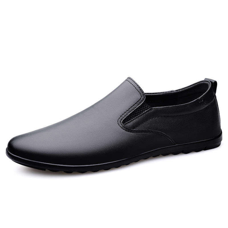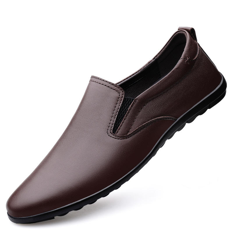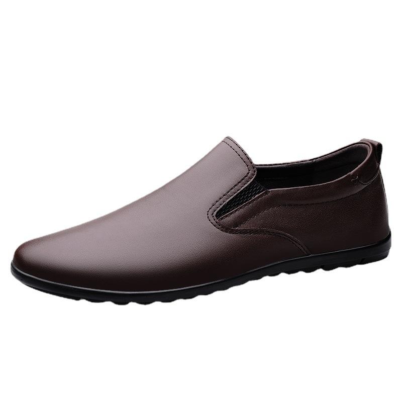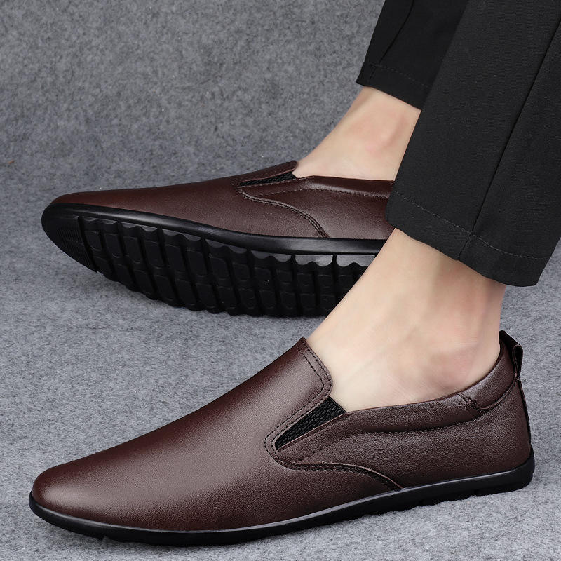 Men's Round Head Two-Layer Cowhide Slip-On Leisure Casual Shoes Sleeve Loafers Breathable Low Heel
