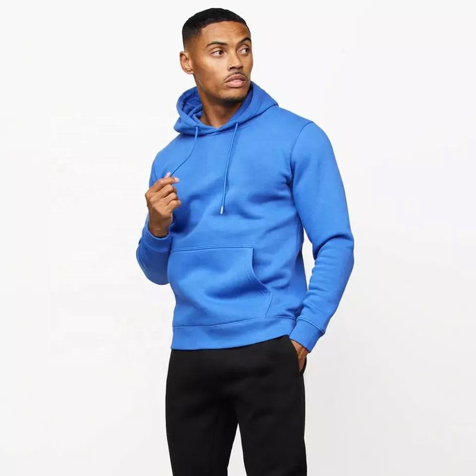 เสื้อฮู้ดสวมหัวสำหรับผู้ชายสีน้ำเงินรอยัลสำหรับยิมและชุดสตรีทพร้อมฮู้ดปักลายดีไซน์สำหรับสไตล์ฮิปฮอป
