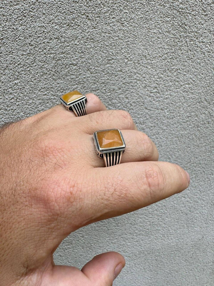 แหวนราชวงศ์ของผู้ชาย925เงินชุบด้วยหินแซฟไฟร์สีเหลืองแท้ประดับเพชรตัดด้วยสเตนเลสคุณภาพดีเครื่องประดับแฟชั่น
