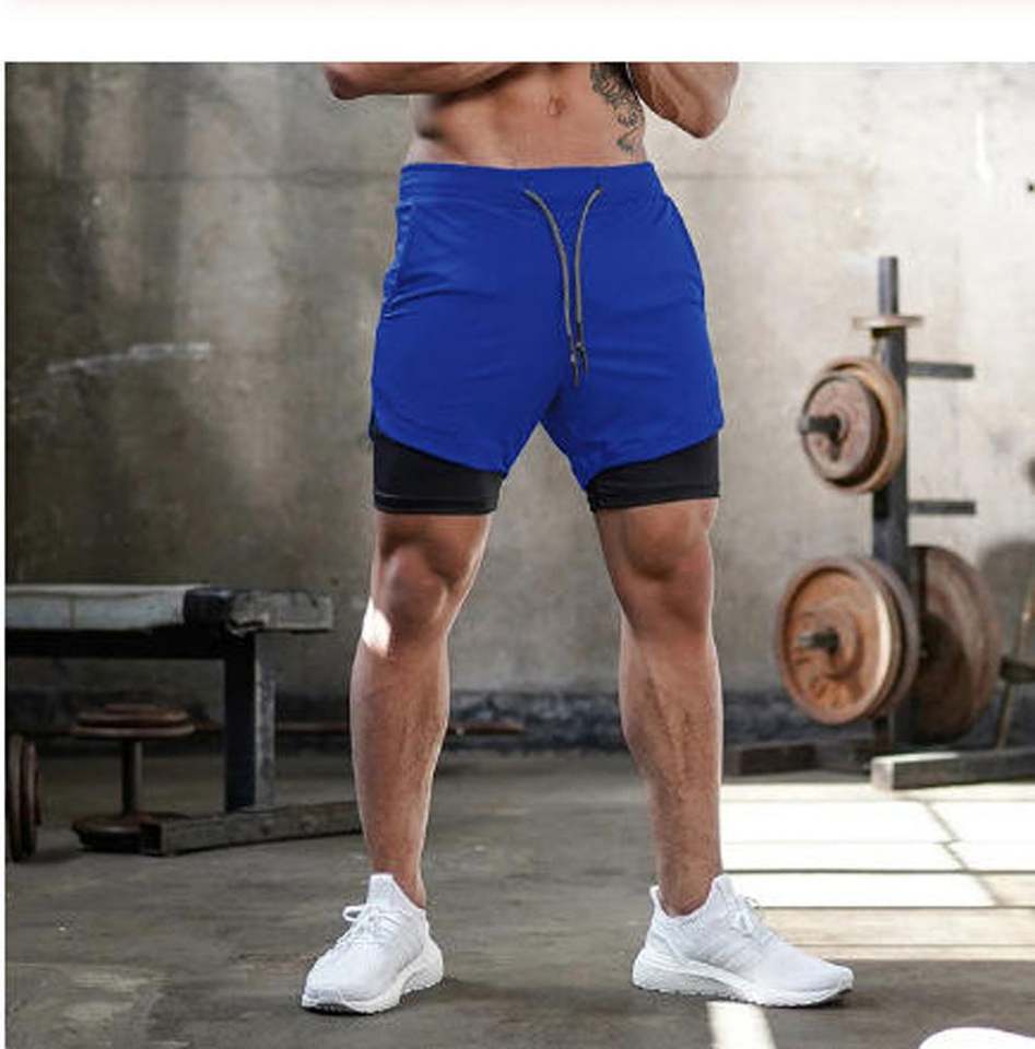 กางเกงขาสั้นออกกำลังกายสองชั้นมีกระเป๋าหลวมหลายกระเป๋าสำหรับผู้ชายกางเกงวิ่งออกกำลังกายกางเกงซับเหงื่อแห้งเร็วสำหรับใส่ไปยิม